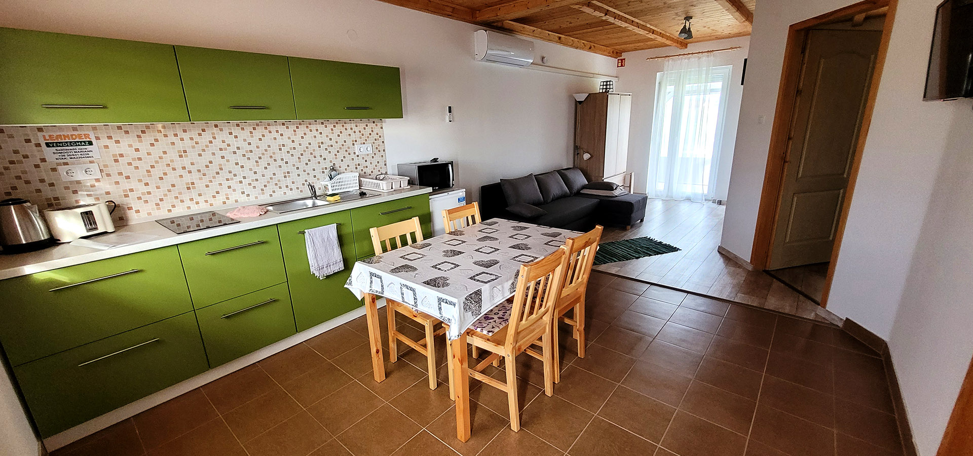 Vendégházunk két azonos elrendezésű apartmanból áll, melyek kellemes pihenést biztosítanak az ide látogatók számára.